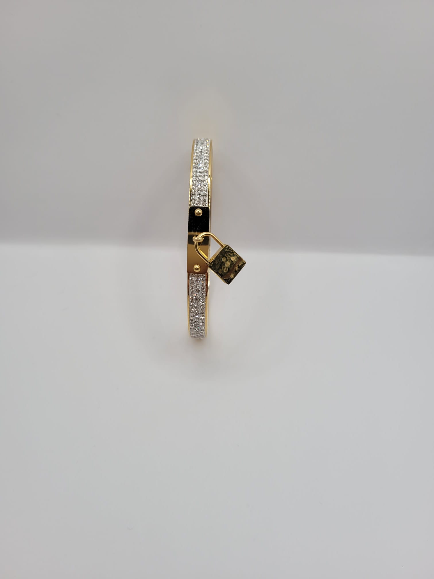 Bracelet Acier Inoxydable Avec Cadenas et Strass Doré