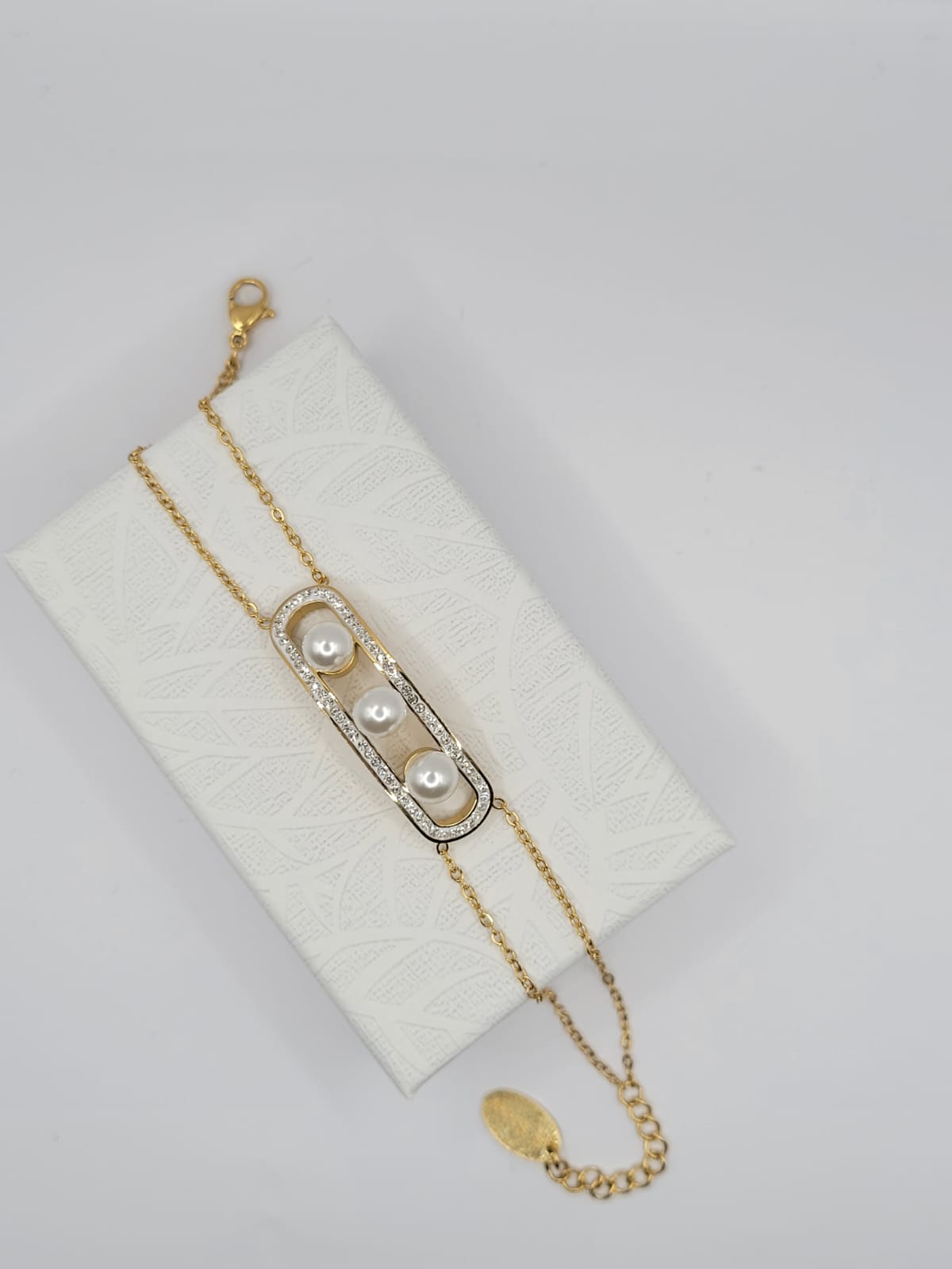 Bracelet Acier Inoxydable Trois Perles Doré Et Strass