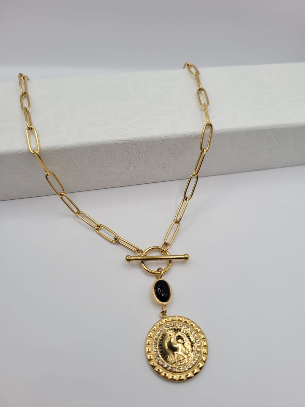 Collier Acier Inoxydable Doré avec Médaillon Coq et Strass :