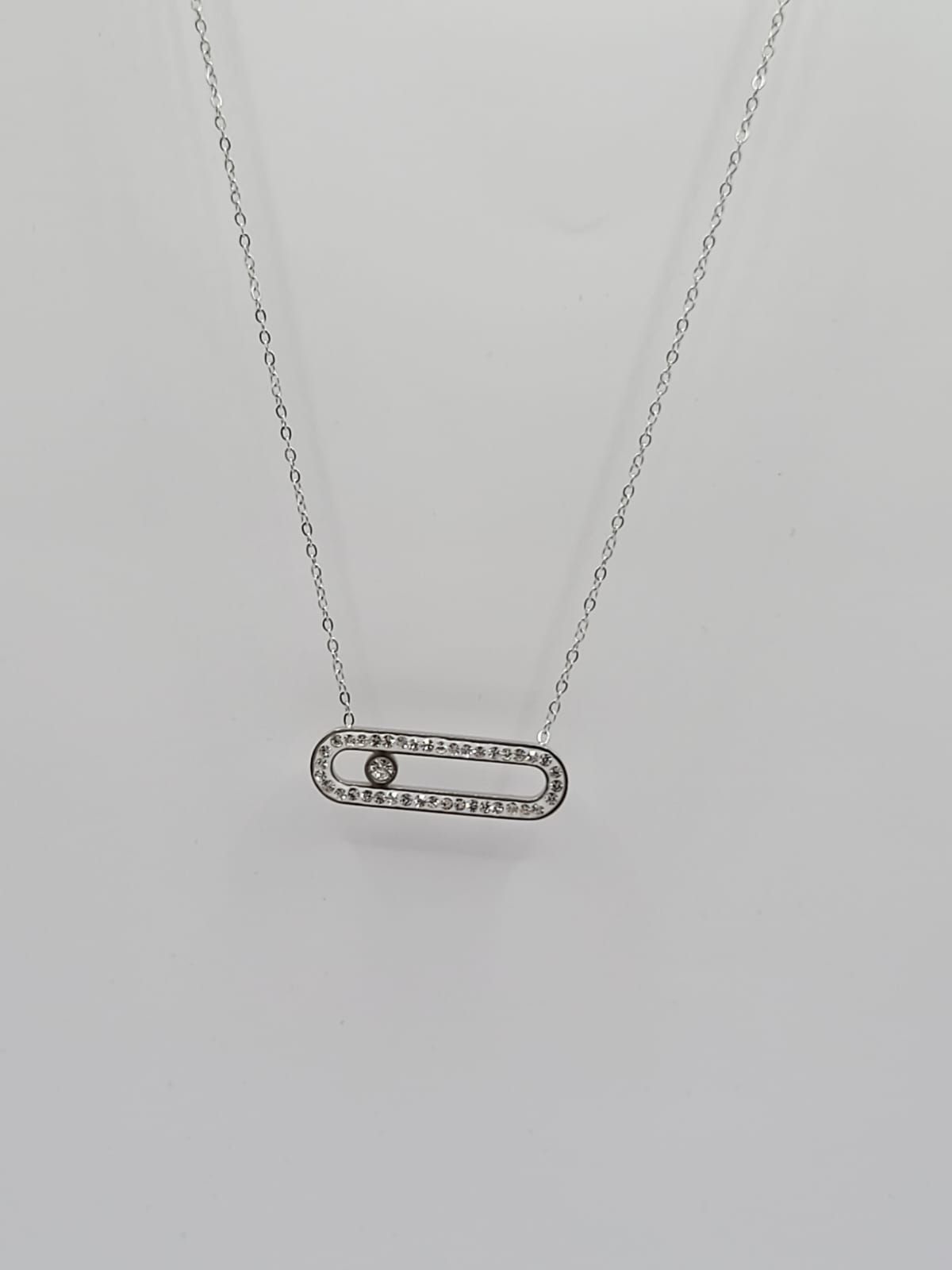 Collier Acier Inoxydable Argenté Et Strass :