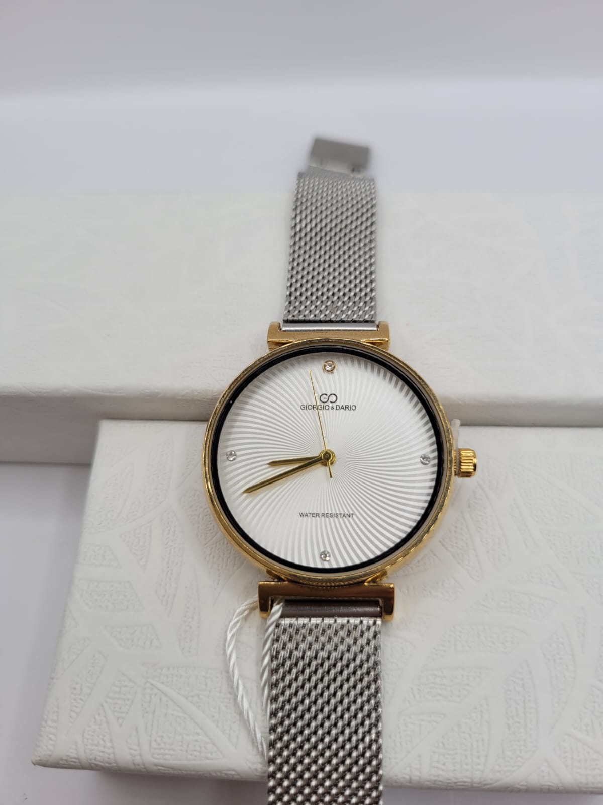 Le cadran de la montre est conçu avec des couleurs or et argent pour un look élégant et coloré. Il est équipé d’un mouvement à quartz pour une précision et fiabilité de temps. Cette montre est également résistante à l’eau pour vous permettre de porter cette montre en toute tranquilité pendant vos activités quotidiennes.